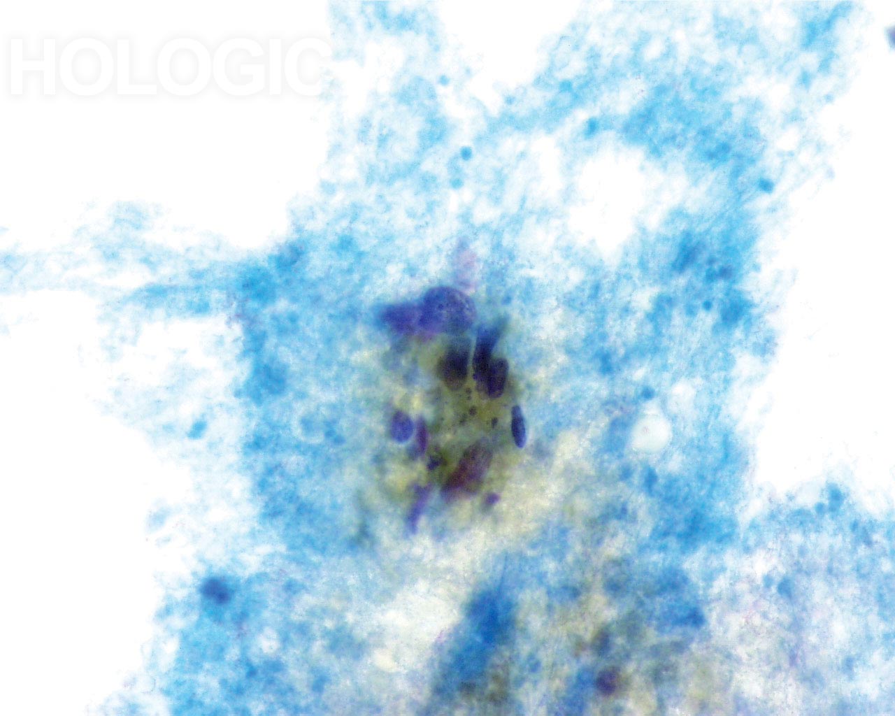 Die wesentlichen „Differentialdiagnosen“ für Tumordiathese auf dem ThinPrep® Pap Test sind Zytolyse, Infektion und Atrophie. Alle diese Bilder zeigen einen schmutzig oder „dreckig“ wirkenden Hintergrund. Beim Screenen wird Ihnen das epitheliale Material helfen, die Ursache des Hintergrunds zu bestimmen. Wie in jeder Situation sollte der Zytologe seine Diagnose nicht auf ein Kriterium alleine stützen. Falls ein „dreckig“ wirkender Hintergrund die einzige Auffälligkeit ist, sollte daraus keine definitive Diagnose abgeleitet werden, selbst wenn es sich um eine echte Tumordiathese handelt. Es sind die morphologischen Malignitätskriterien im Kern der Epithelzelle, die den Schlüssel zur definitiven Diagnose darstellen.