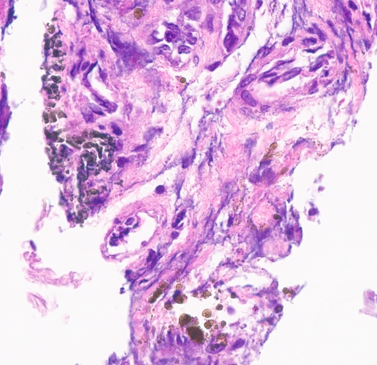9.Ghio,AJ, Roggli, VL. Perls’ Prussian blue stains of lung tissue, bronchoalveolar lavage, and sputum. J Environ Pathol Toxicol Oncol. 2021; 40(1): 1-15. doi:10.1615/JEnvironPatholToxicolOncol.2020036292.
