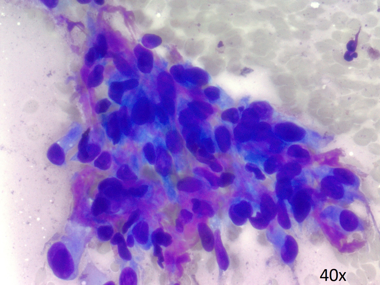 Specimen Type: FNA of RUL nodule. ThinPrep® Non-Gyn and conventional smears with Diff Quik stain, H&E stain (traditional cell block), Papanicolaou stain and AE1/AE3 (traditional cell block).