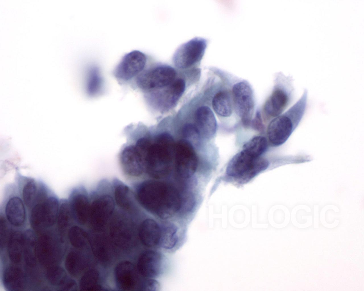 HSIL – Nuclei show variability in shape (round to oval) and size. 40x