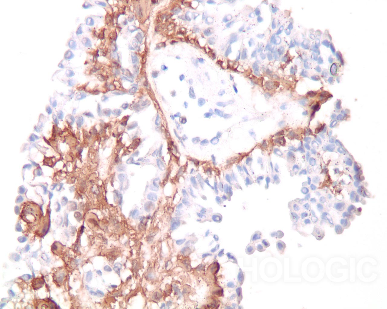 De afwezigheid van een immunokleuring met calponine duidt op een diagnose van een papillair carcinoom.
