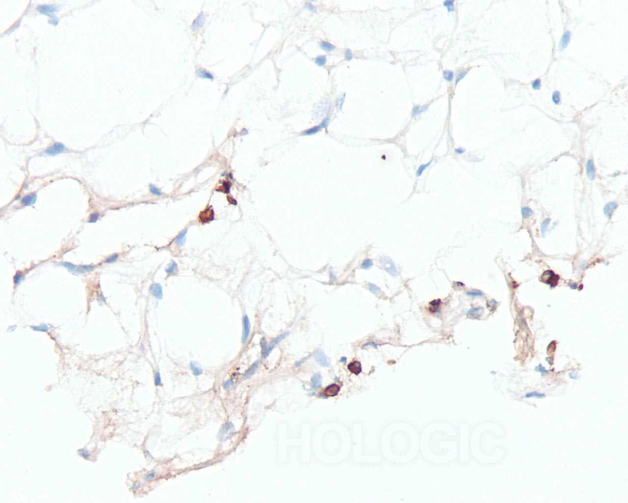 Een pankeratine immunokleuring kan nuttig zijn om de spaarzame, infiltrerende lobulaire cellen aan het licht te helpen brengen.