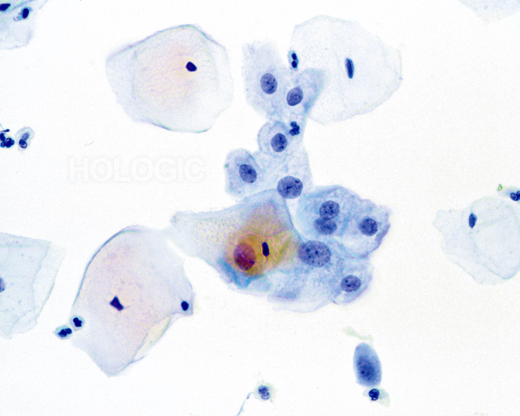 ASC, as long as it remains a category in TBS, will be used by pathologists because of inherent subjectivity of human diagnosis, and variable interpretation of criteria. Also important is the biologic nature of Human Papilloma Virus (HPV) that causes morphologic perturbations in cells that are less than LSIL. The morphologic changes caused by HPV are discussed in greater detail in the section covering Low Grade Squamous Intraepithelial Lesions. The role of this virus in the causation of ASC has created the opportunity to determine the relative risk of ASC changes by the determination of high- vs. low-risk types of virus through ancillary testing of the material in the ThinPrep Pap Test vial.